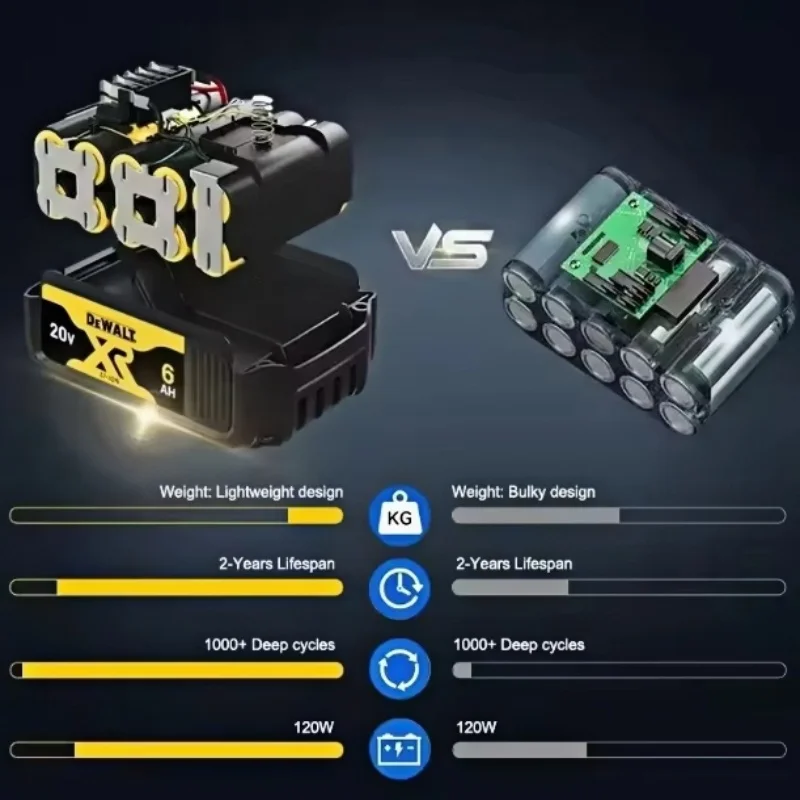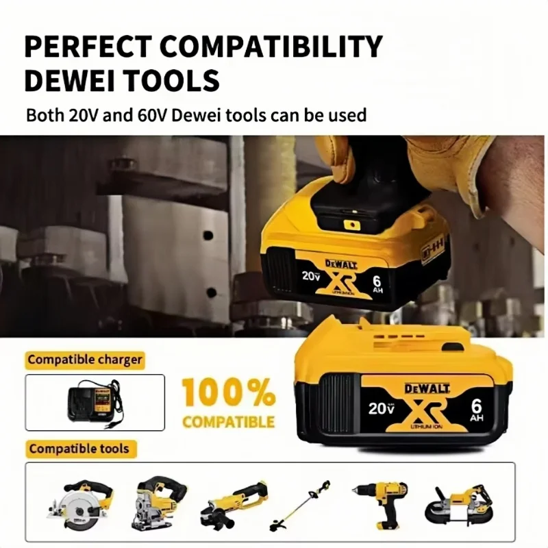 The DEWALT 20V 6Ah lithium-ion battery delivers dependable power and extended runtime for demanding cordless tools. Compatible with models DCB206, DCB205, and DCB200, this high-capacity battery ensures consistent performance across a wide range of applications. Designed for seamless use with DeWalt 20V MAX power tools, it provides reliable energy for drills, drivers, saws, and other jobsite equipment. Built for durability and efficiency, this battery is an ideal replacement or backup power source for professionals and DIY users who need long-lasting performance.